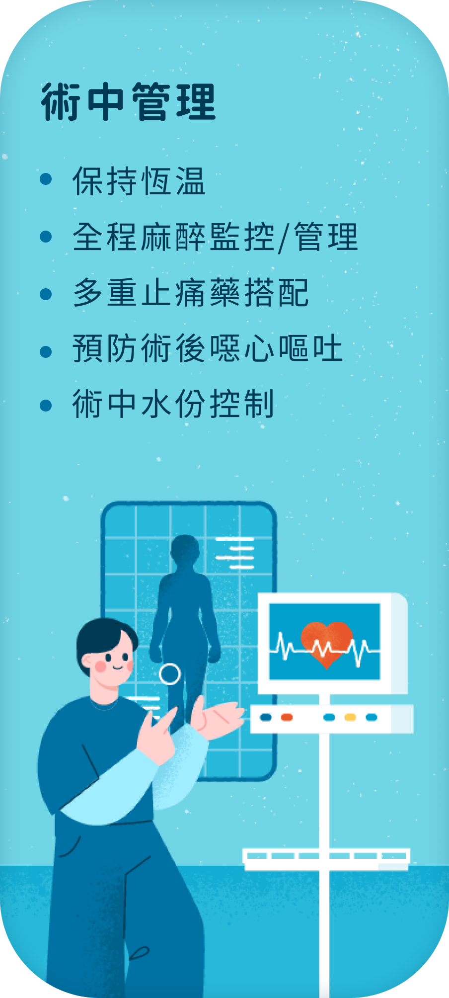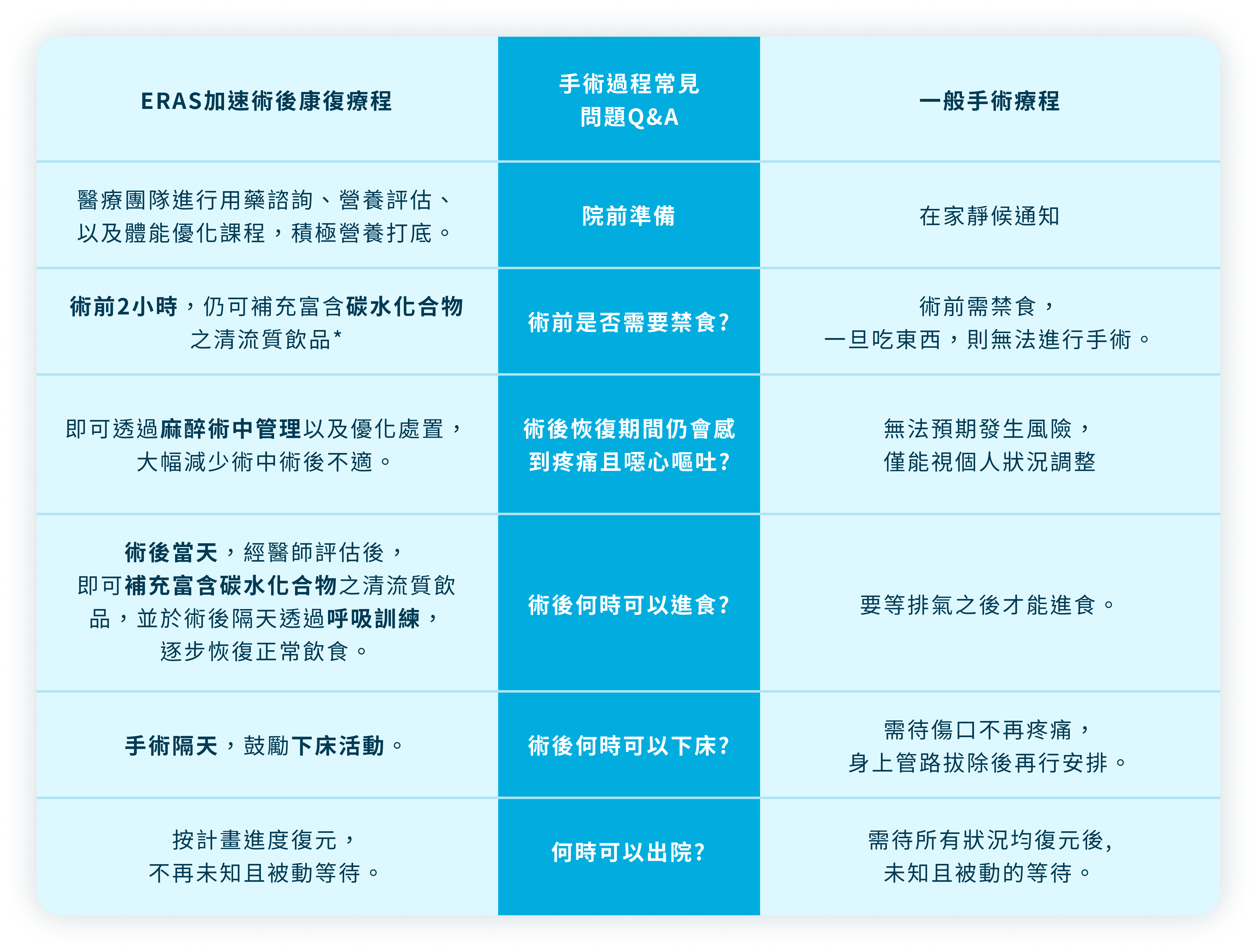 術前預先備戰,減少禁食時間與補充免疫營養,術中優先管理,術後優化性復健