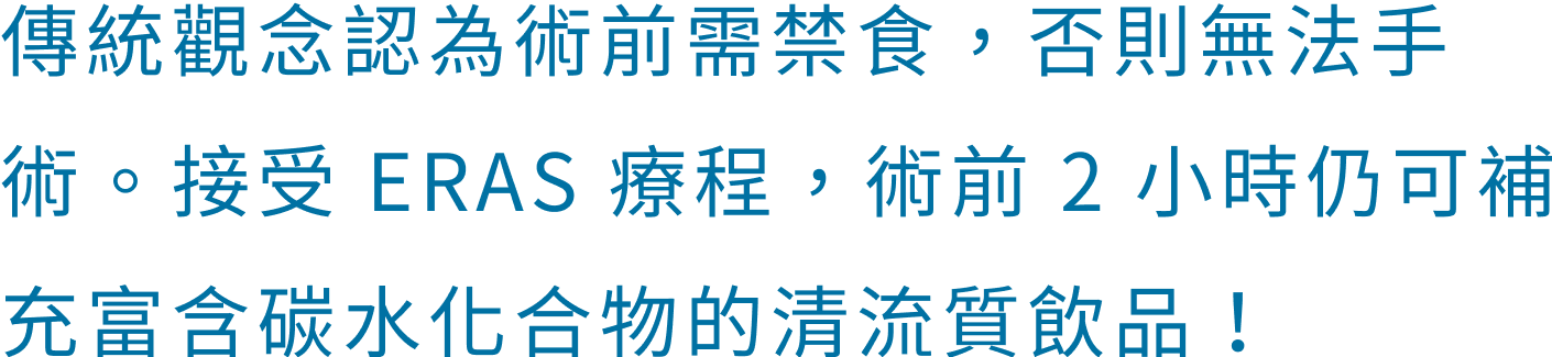 接受ERAS療程,術前2 小時仍可補充富含碳水化合物之清流質飲品